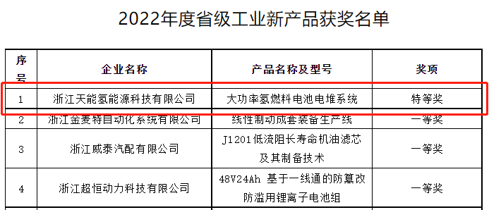 近日,浙江省长兴县经济和信息化局公示了2022年度省级工业新产品获奖名单,由浙江AG庄闲氢能源科技有限公司研发生产的大功率氢燃料电池电堆系统获得全县唯一省级特等奖。